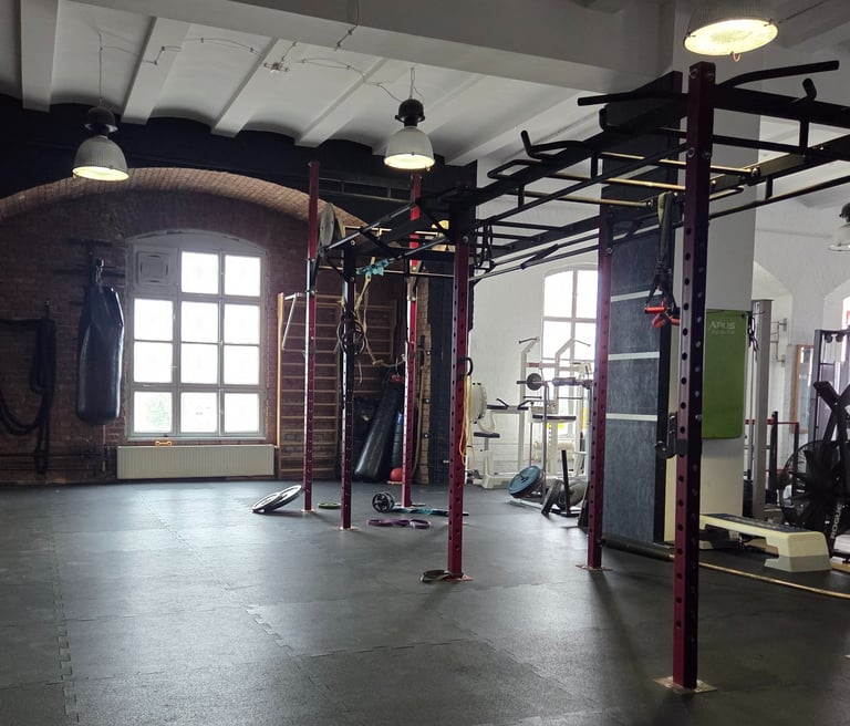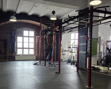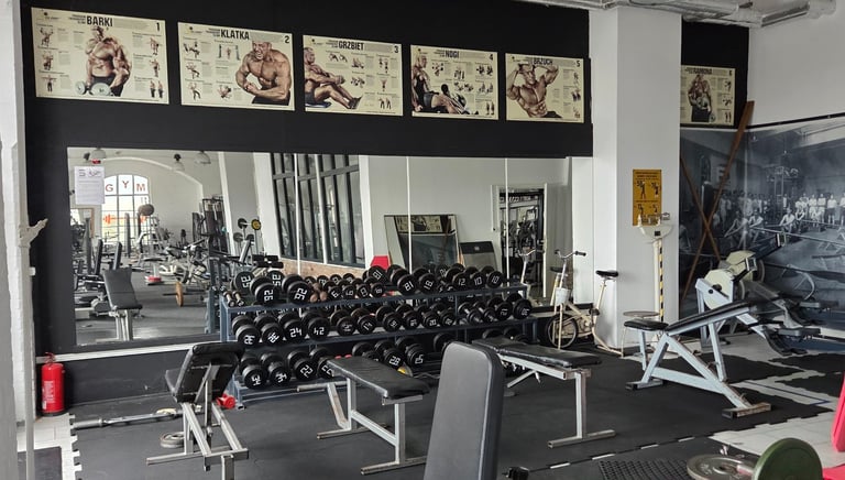 Witamy w Sports Factory - klubie fitness, gdzie pasja do sportu łączy się z retro stylem i stalowymi teksturami. Oferujemy wyjątkowe doświadczenia w czarno-żółtej atmosferze.