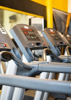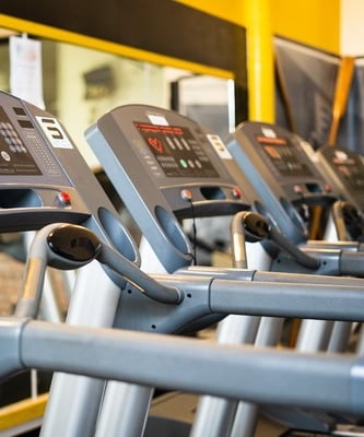 Świetna atmosfera w klubie! Czarno-żółte kolory i stalowe tekstury nadają mu retro charakter. Idealne miejsce dla miłośników fitnessu.